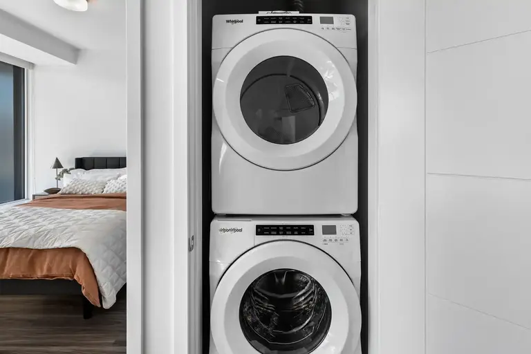 • In suite full-size front-loading Whirpool washer and dryer