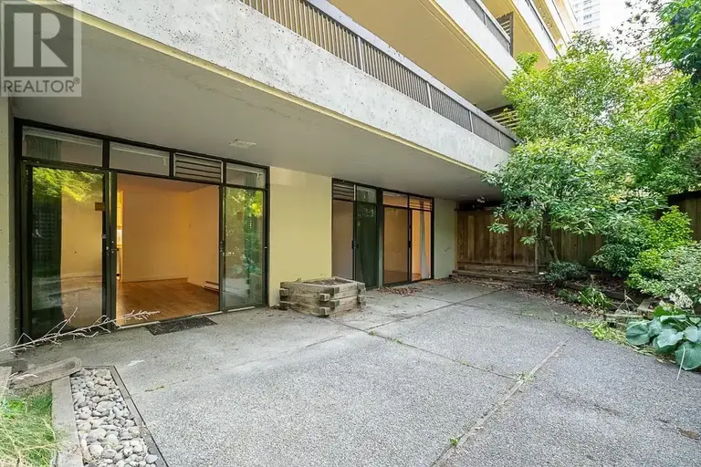 924 Sq Ft Ground Level with a massive 435 Sq Ft Patio right beside Patterson Skytrain Station! Featuring a 2 bedroom unit with laminate flooring through out. Across the street from Central Park, steps to Kingsway and walking distance to Metrotown Mall. Hot water included in the rent. 1 parking stall & storage locker included, second stall can be rented for $50 per month. Pets are allowed! Minimum 6 month lease. Laundry is shared in the common laundry room. Available to move in any time! (id:61160)