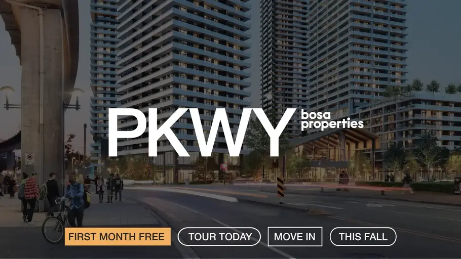 Studio, one-and-two-bedroom rental homes with top-rated management at the centre of it all in downtown Surrey. EXCLUSIVE LAUNCH OFFER: Enjoy a free month's rent—plus a limited-time bonus when you move in early. Enquire for details.Rent at PARKWAY and live worry-free in a home with top-rated managers and on-site maintenance. All homes are pet-friendly with in-suite laundry, modern finishes and have access to in-building amenities designed for community and connection. Enjoy: Highly rated in-house property management with 4.7/5 stars on Google Reviews across our portfolio. Spacious patios that span the full width of every home. Smart home technology including Wi-Fi connected thermostats and light switches, keyless entry, parcel delivery and more. On-site maintenance and security with CCTV coverage throughout gated parkade. Fully equipped gym – Cardio machines including Peloton spin bikes with commercial subscription, yoga and stretching area, plus a weightlifting area with squat racks, deadlift station, dumbbells and resistance sled. Social lounges – Rooftop lounges include a games lounge with poker table, pool table, ping pong, bar and lounge area, kitchen, bar seating and TVs. Study lounge with private working spaces and meeting rooms. Bookable dining lounge with kitchen, lounge seating and TV. Outdoor patio – Spaces to chill and connect outside with BBQs, fire puts and communal dining areas. Lower-level amenities – Lobby and lounge with seating and working space, oversized parcel room with parcel pending lockers, bike storage and bike wash station. Pet friendly building with pet wash and outdoor dog run. Suite Features Spacious full-width balconies in every suite. Air filtration and air conditioning in all homes. In-suite laundry. Minimum 8’6” ceiling heights in all suites. Engineered stone countertops in kitchen and bathroom. Modern stainless-steel appliances including electric cooktop, dishwasher and wall oven. Neutral light colour palette throughout homes. Luxury vinyl plank flooring. Roller shades throughout suites. Hard-wired smoke and CO2 detectors. Managed and cared for by Bosa Properties These long-term rental homes are owned and managed by Bosa Properties, which makes your rental experience completely seamless. From move-in to repairs, our staff are like neighbours who are always there to lend a hand. Rent today. Save for tomorrow. Renting with Bosa Properties unlocks a full suite of benefits and rewards, including perks like the BPI Equity Program. The first of its kind, the BPI Equity Program helps you save for a home while renting. Through the BPI Equity program, 25% of your monthly rent automatically accumulates and can be put towards up to 5% of the purchase of a new Bosa Properties home. PARKWAY MASTERPLAN PARKWAY is a vibrant master-planned community by Bosa Properties, built on decades of trust, quality, and innovation. Located in the heart of Downtown Surrey, it brings together over 2,000 homes to own or rent with public and private spaces that offer convenience and connection. To book a tour, please reply here