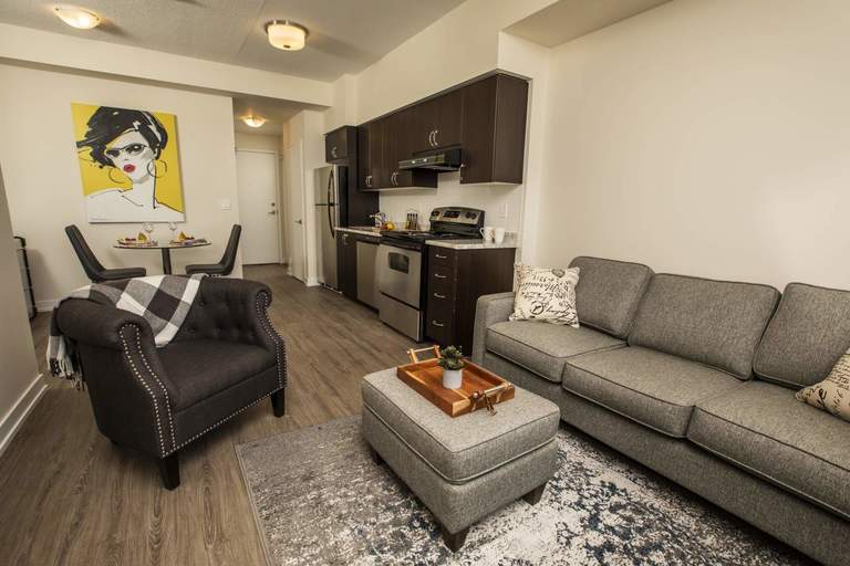 -------------AboutChoose from a large selection of smartly designed suites in this contemporary building and enjoy an array of amenities including a Fitness Room, Party Room, luxurious Lobby and Landscaped Outdoor Terrace. Best of all, enjoy convenient retail at ground level of the building all steps from Pat Bayly Square with open space for gathering in the summer to ice skating in the winter months.Community AmenitiesElevatorsLaundry facilitiesSocial roomLuxury LobbyOn-Site Retail/CommercialTheater RoomOutdoor TerraceFully Equipped GymLoungeGames RoomSuite AmenitiesFridgeStoveBalconiesCeramic floorsHardwood floorsIndividual thermostatsPark viewsCity viewsCentral air conditioningSecured entrancesDishwasherUtilities IncludedHeat