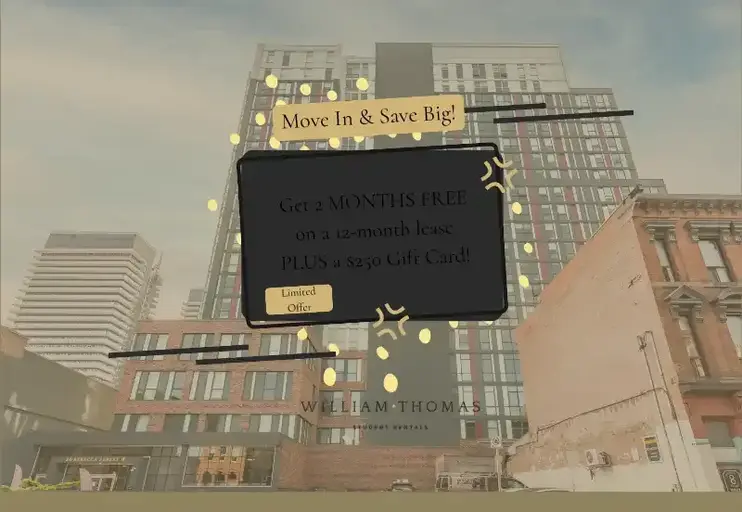 William Thomas - Student ResidenceLIMITED OFFER: GET TWO MONTHS FREE AND A $250 GIFT CARD!Open House every Saturday10:00am - 04:00pm Luxury Student Rentals - in a 2 bedroom with shared accommodationsFully Furnished Student Residence40'' Smart HD TV Included in Every Unit.Located Between King Street E and Wilson Street. Featuring 1 Bedroom and 2 Bedrooms