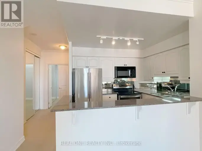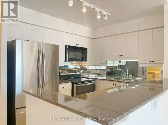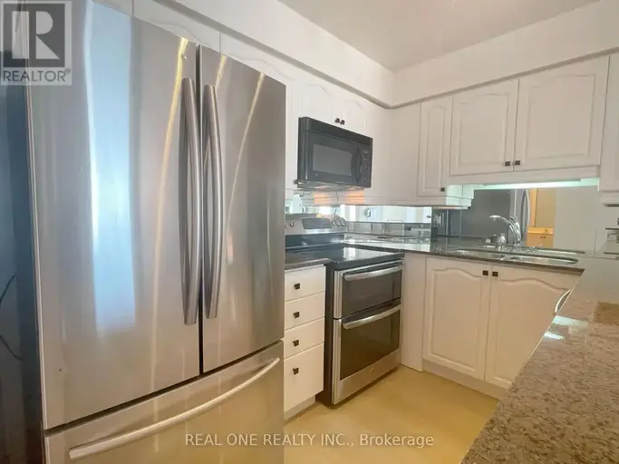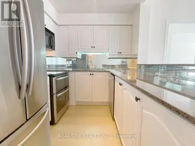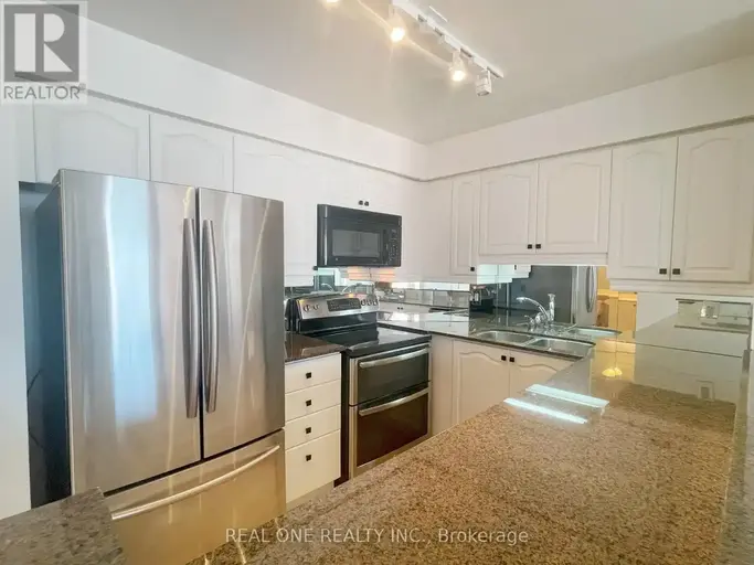 This impressive 1,060 sq. ft. condo features 2 bedrooms plus a den and 2 full bathrooms, perfectly located just a 3-minute walk from Oakville GO Station, Whole Foods, restaurants, and more. The unit showcases brand-new, water- and scratch-resistant vinyl flooring throughout and an open-concept kitchen with newly refinished white cabinetry, granite countertops, stainless steel appliances, and a breakfast bar.The primary bedroom boasts a 3-piece ensuite and a walk-in closet with built-in organizers. The second bedroom, with elegant French doors, allows natural light to flow through and offers open views from the kitchen and living room. Step out onto the private balcony from both the living room and second bedroom, enhanced with invisible Dream Screens.The versatile den is ideal for a home office. In-suite laundry.Plenty of visitor parking.The building offers excellent amenities:pool, gym, party room, outdoor BBQ area, and more and is located within a top-rated school district: Trafalgar High School, E.J. James, New Central Public School, and Maple Grove. This home combines modern comfort with unbeatable convenience and value.heating,cooling and water are included .Tenant to pay hydro. one underground parking space and locker included. Available immediately. (id:61160)