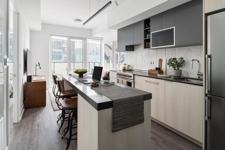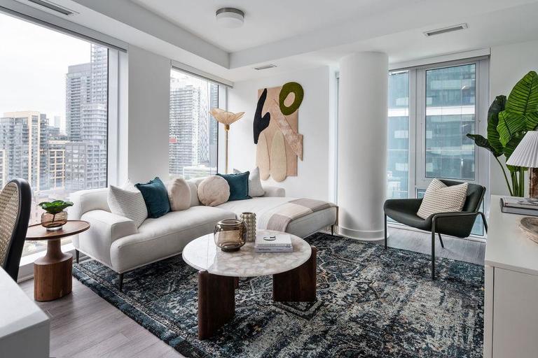 Rising in the heart of King West, FourFifty The Well offers an exclusive downtown lifestyle many only dream of. Enter a dynamic, urban enclave that caters to your every whim with unparalleled service and unique community comforts. Feel Toronto’s renowned culture and sophistication suffuse your day-to-day, surrounded by the city’s most exciting boutique shops, celebrated eateries and trendy late-night spots.NOW RENTING STUDIO, ONE, TWO AND THREE BEDROOM SUITES. MOVE IN NOWMove-in incentives on select suites. Limited time offer.*Renderings are artist's concept. E.&O.E.**Pricing and specials subject to change based on availability. For floorplans and pricing please visit www.livingatfourfifty.com or contact us for more details.Leasing Centre Location450 Front Street WestToronto, ONOffice HoursMonday – Friday 10AM – 7PMSaturday 10AM - 5PMProfessional property management and resident services by Rhapsody Property Management ServicesProudly developed by Riocan LivingCommunity AmenitiesThe GymYoga Studio Massage RoomThe Dining RoomThe CafeThe StudyThe TerraceThe Rec RoomThe Billiards RoomThe KitchenThe Terrace Outdoor Dining & BBQsOutdoor Lounge & Fire PitsThe Dog RunSmart Parcel Management lockers100% smoke-free building for easy breathingPet-friendly communityUnderground parkingUnderground bike storageKeyless access controlProfessionally managed by Rhapsody Property ManagementOn-site maintenanceResident PortalAmenity Booking SystemOnline Rent Payment System​General Suite FeaturesOffering studio, 1 and 2, 3 bedroom suitesFloor to ceiling windowsIn-suite washer and dryer2 Colour palette optionsBalconies in select suites9' smooth ceilingsVinyl plank flooring throughout main living areas and bedroomsSun shades in all main living areasBlack-out shades in all bedroomsSmart thermostatsSmart locks at suite door entryKitchen FeaturesCustom crafted Italian kitchens with flat panel cabinetryCustom crafted Italian kitchens with flat panel cabinetryQuartz countertop and porcelain tile backsplashOpen shelving featureFluted glass cabinetKitchen faucet in chrome finish with stainless steel under-mount sinkDesigner selected kitchen island pendant lightingUnder-cabinet lighting5-piece appliance package includes:Stainless steel refrigeratorBloomberg electric rangeStainless steel hood fanStainless steel microwave with trim kitPanel-ready dishwasherBathroom FeaturesSleek porcelain floor tileFull-height modern porcelain wall tile in bath and showerAcrylic shower pan, as per planFrameless fixed shower panel, as per planQuartz countertop with under-mount sink and vanity mirror with integrated lightingDesigner selected plumbing fixtures in chrome finishShower pot light, as per planPenthouse CollectionCustom designed penthouse colour paletteApproximately 10’ ceilings on levels 44-45, and approximately 11’ ceilings on level 46Custom crafted Italian kitchens with flat panel cabinetryQuartz countertop and backsplashDesigner selected, upgraded kitchen fixtures in hard graphite finishGraphite finish kitchen faucet with stainless steel under-mount sinkDesigner selected kitchen island pendant lightingDesigner selected bathroom plumbing fixtures in graphite and black finishUpgraded 6-piece appliance package includes:Stainless steel refrigeratorFulgor Milano electric glass cooktopFulgor Milano wall ovenStainless steel hood fanFulgor Milano microwave with trim kitPanel-ready dishwasher