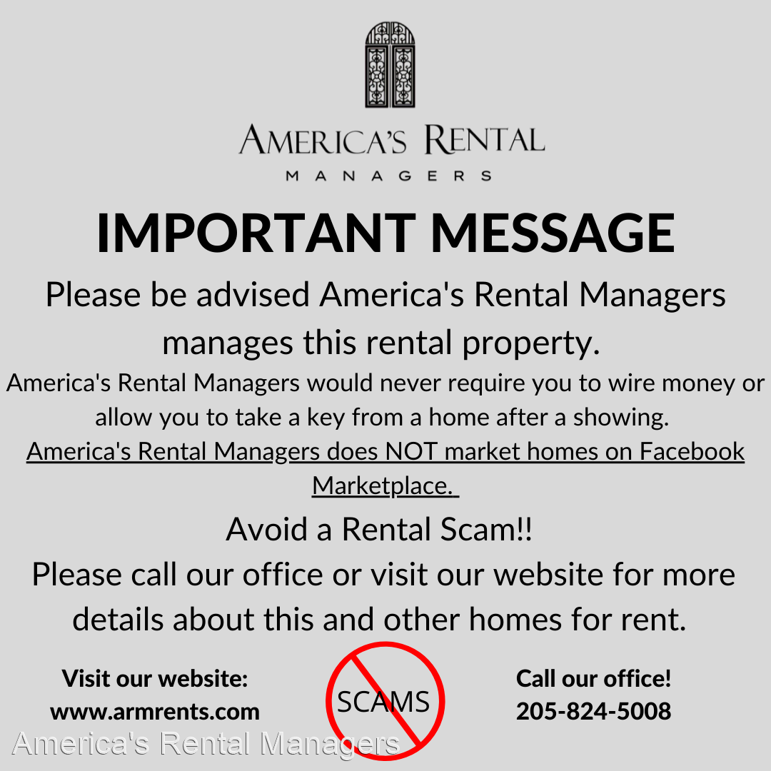 America's Rental Managers is a leader in the Birmingham Property Management and Rental market. Give us a call today to schedule a viewing! 205-824-5008. Check out our FAQ's for more information about our rental policies and application process. www.armrents.com