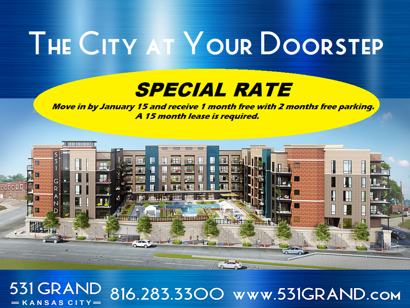 We are a nonsmoking community, with easy access to the new KC Streetcar, the River Market, and Downtown.