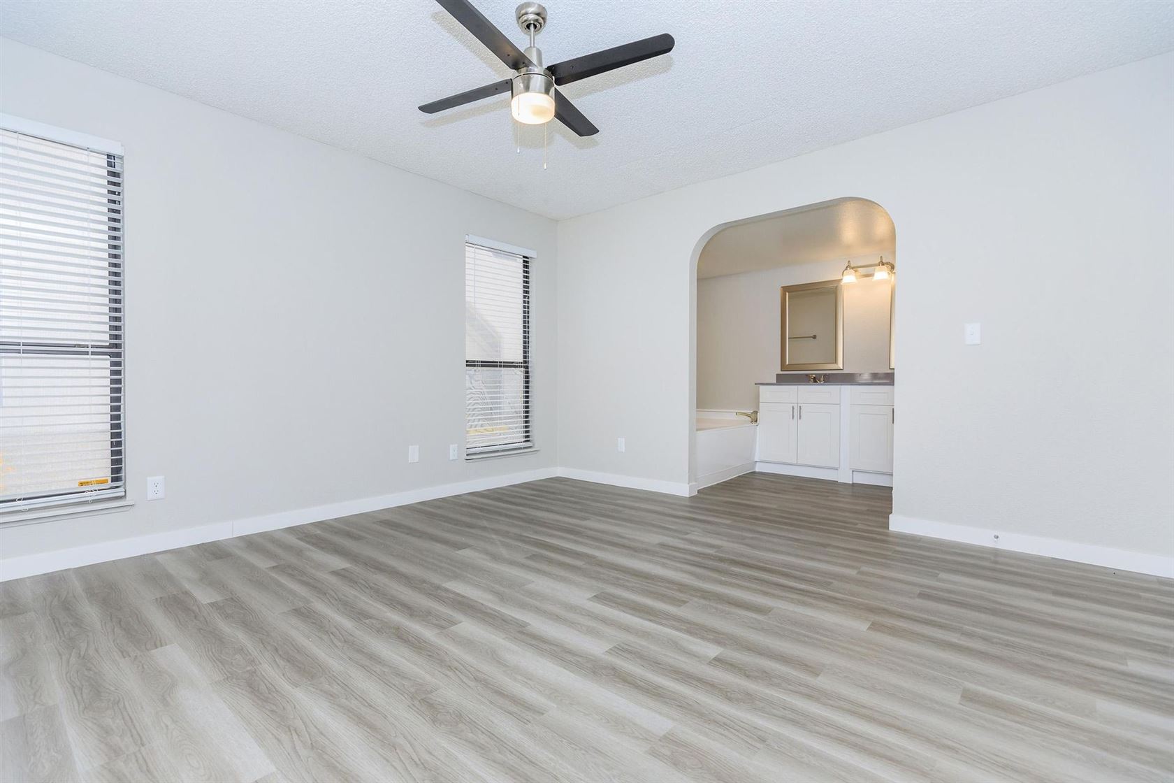 Be greeted with an open living room that is so ideal for entertaining and a kitchen that doesn't feel mass-reproduced and lacking character. Your bedrooms are spacious with private patios and glass French doors and the master is complemented with a large soaking Roman tub that is rarely seen in today's modern communities.