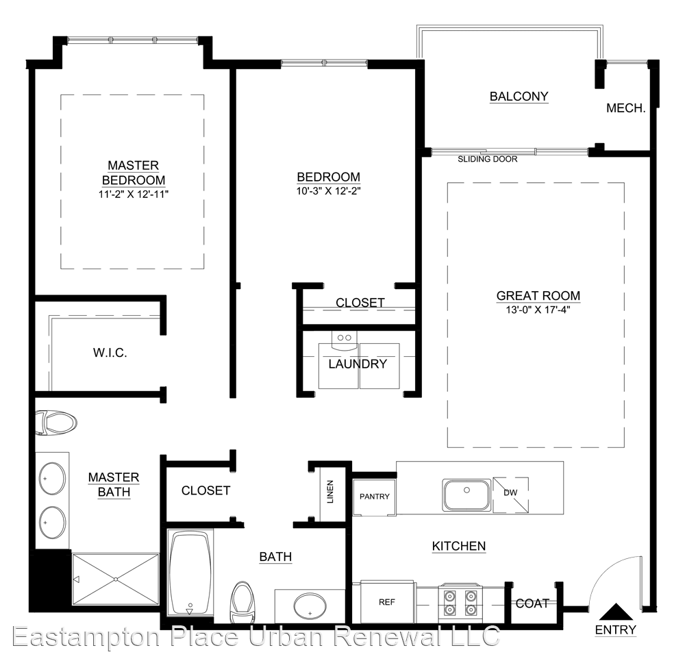 MacArthur End Unit (Penthouse) - This third-floor two-bedroom, two-bathroom end-unit home features a large kitchen with granite counter tops, tiled backsplash, GE Energy Star appliances, pantry, and custom cabinetry. The master bedroom with tray ceiling enjoys a private bath and oversized walk-in closet. Walk out to the large, private balcony from the kitchen or great room with tray ceiling. With vaulted ceilings and ceiling fans in the master bedroom and great room, a full-size washer and dryer, ample closets and spacious second bedroom with bay window, see why this third floor MacArthur is a great place to call home!