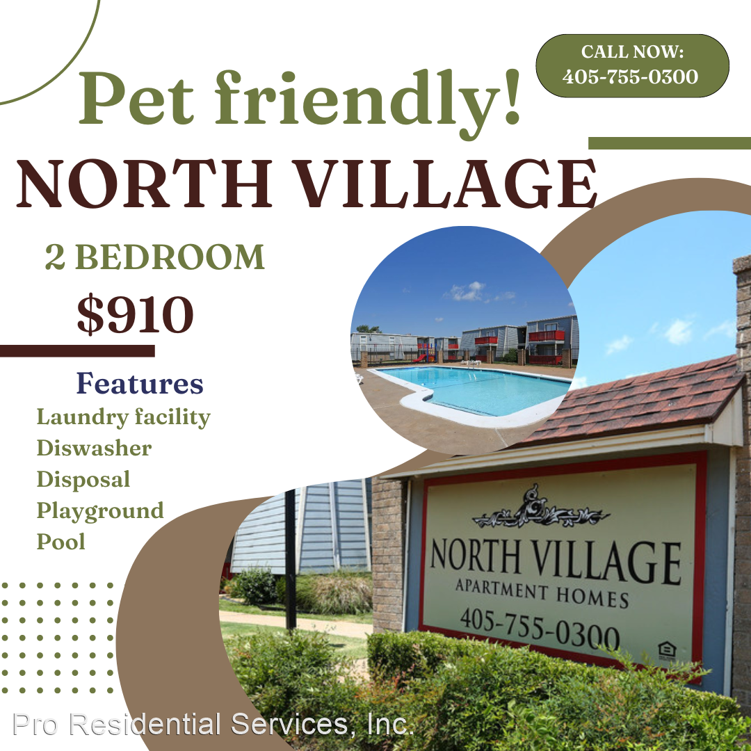 50% OFF First month rent! (o.a.c) - Welcome Home to these wonderful Oklahoma City Apartments! With our caring, professional staff that’s sure to make you feel at home, coupled with the great new feel of North Village Apartments, you won’t want to look anywhere else! Our Apartments In Oklahoma City include new ceramic tile and carpet, designer light fixtures, and a great playground, just to name a few! With beautiful mature landscaping, a fun playground area, and a convenient location, you’re sure to love North Village Apartments! Now there is a better way to live, work, and play in the heart of Oklahoma City. Our Apartments In Oklahoma City are distinctively styled with the features and amenities we know you will love. Strategically designed, these generous spaces feature large closets, individual climate control and tasteful design features tailored to comfort living. Best of all, our generous management team is committed to making your experience enjoyable. Finally, an apartment home that provides space to feel inspired. Welcome home to your new Oklahoma City Apartment.