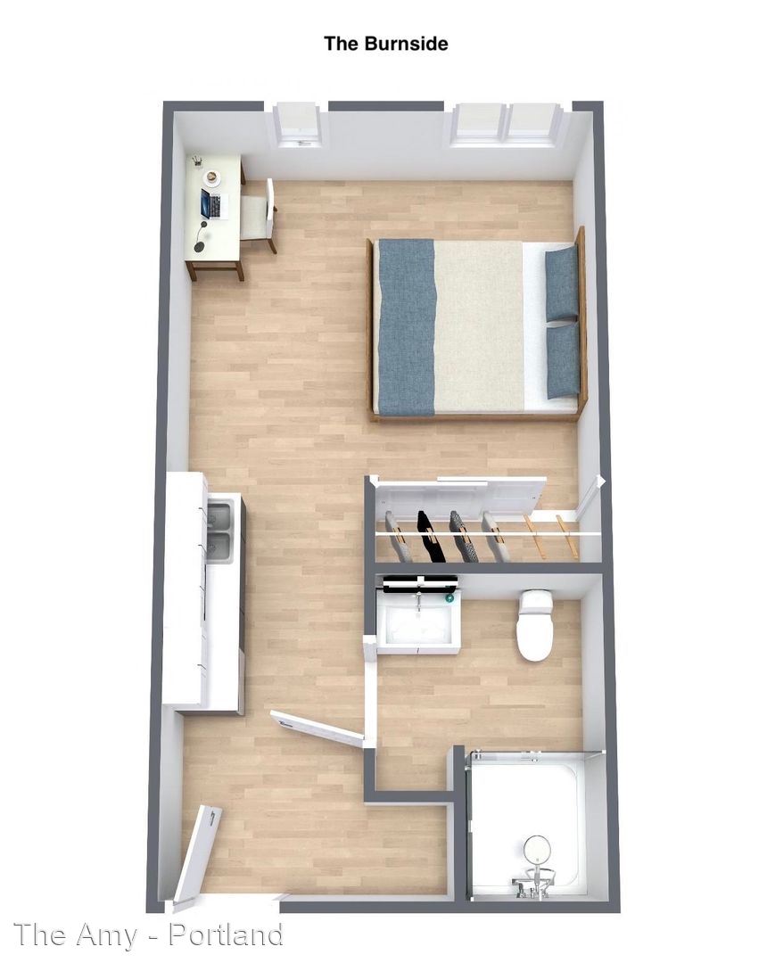 The Amy was designed with the student experience in mind. Several large common areas throughout the building promote community and student connection, while the private studio apartments allow residents to maintain their own space. Our apartments complete with a Murphy bed and a desk and chair set, perfect for studying. An outdoor courtyard and complimentary bike parking are just a few of the amenities available to residents. Located within steps of Portland State University, The Amy is also a short walking distance from Safeway, restaurants, coffee shops, and many public transit lines.