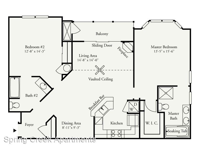 Ficus Premium 1st Floor - *Rental Rate quoted is subject to change based upon lease term. This beautiful two-bedroom, two-bathroom home is located on the first floor. The galley-style kitchen provides nice separation from your living areas. The dining and living rooms feature beautiful bay windows. The Master bedroom includes a window seat, a spacious walk-in closet, and direct access to the master bathroom, which offers a shower stall, soaking tub, and double vanity.