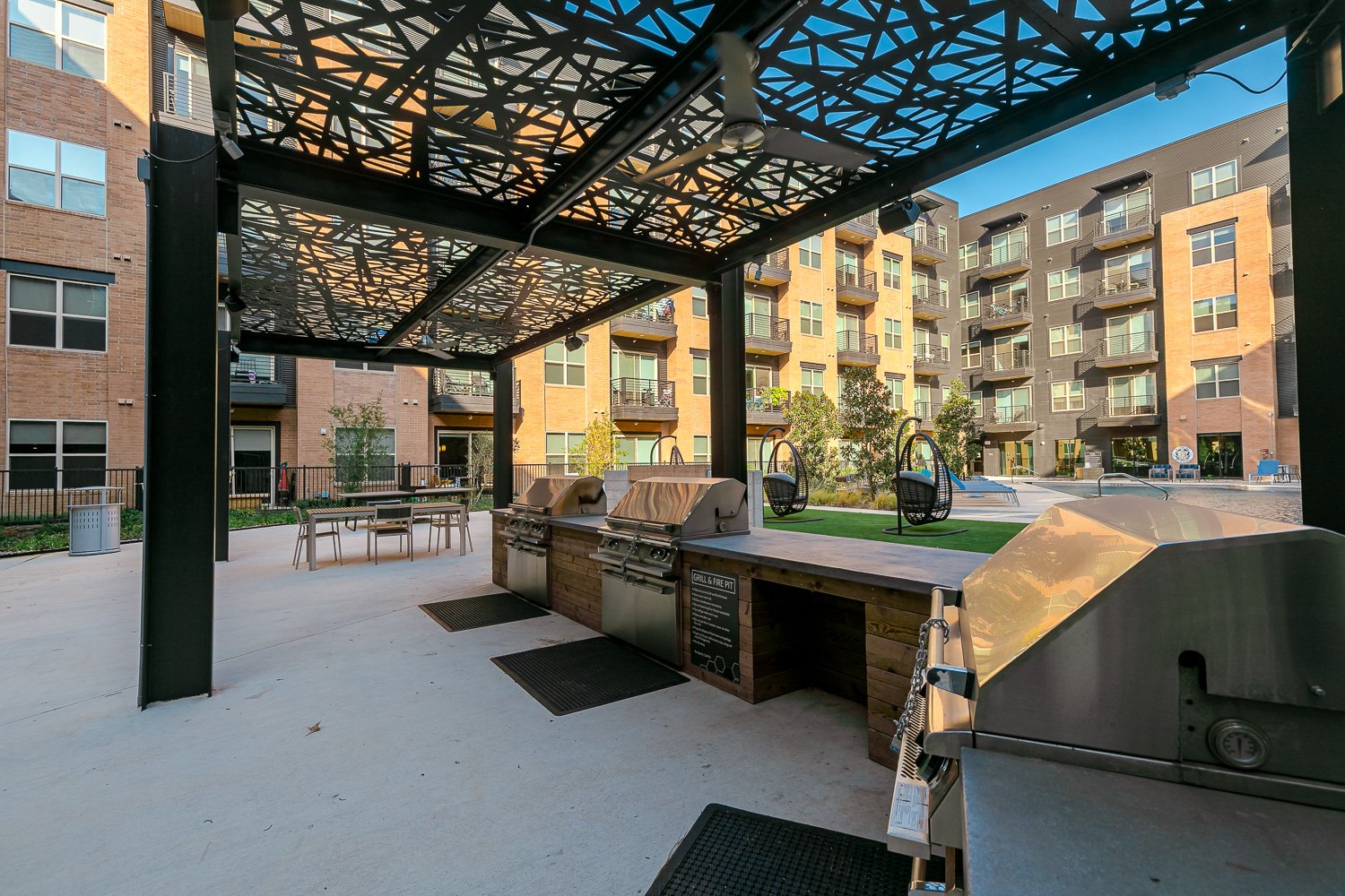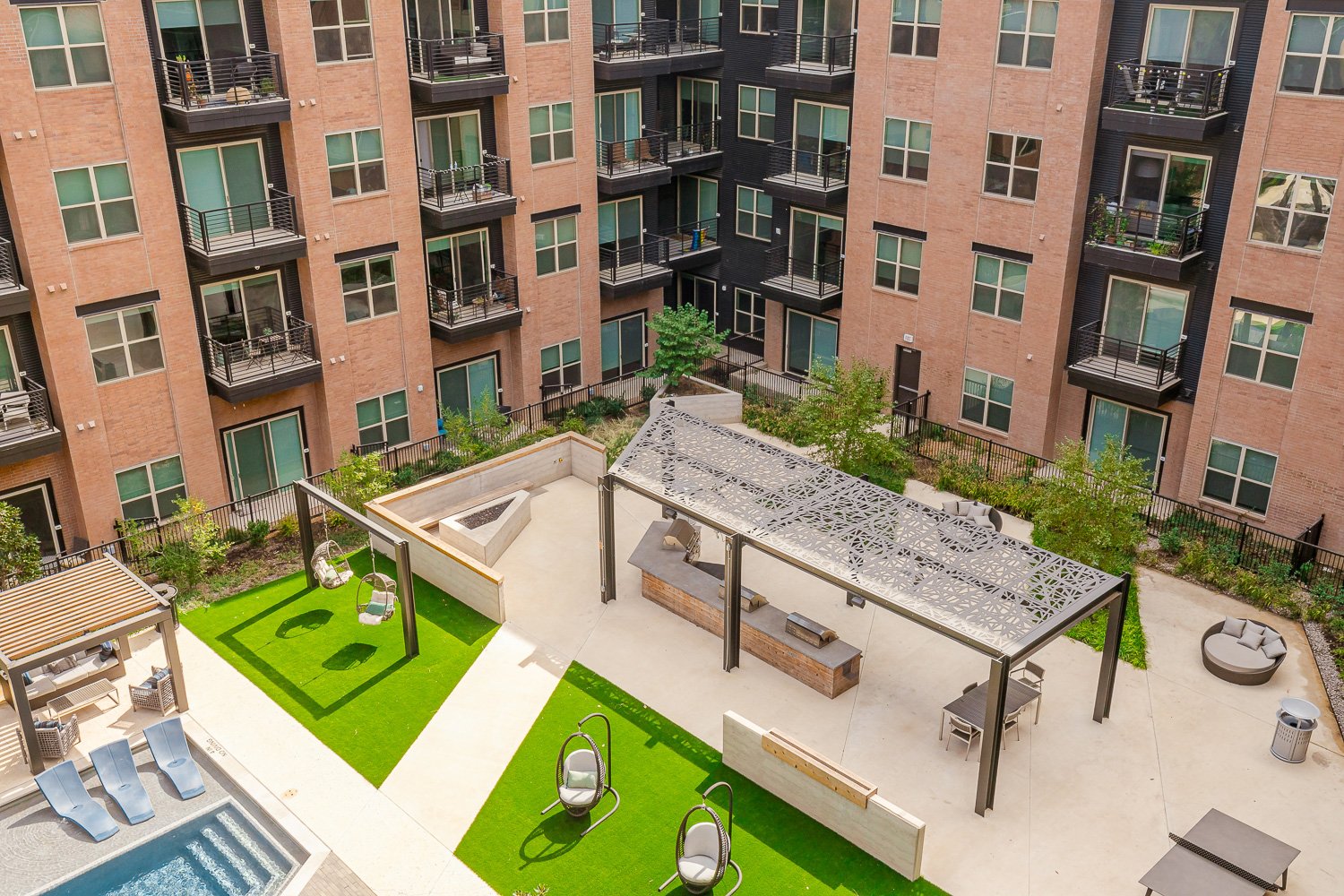 Los Altos Trinity Green Apartments in Dallas, Texas With thoughtful design and exclusive community amenities, Los Altos Trinity Green Apartments is your destination for upscale apartments in Dallas, Texas! We've redefined what luxury living means to you in our exceptional studio, one, two, and three-bedroom apartments, that offer up to 1,696 square feet of living space with a collection of interior touches. Come home to spacious living areas with nine or ten-foot ceilings, wood-inspired flooring, electronic lock entry, solar shades, walk-in closets, a private patio or balcony, washer/dryer in-unit, and a variety of other modern finishes. Our gourmet kitchens, featuring white quartz countertops, glass tile backsplashes, stainless steel appliances, apron-front kitchen sinks, and undercabinet lighting, will all have you cooking like a pro in no time! Beyond your apartment, you’ll find an array of resort-style amenities that focus on comfort and luxury. Take a dip in our refreshing swimm