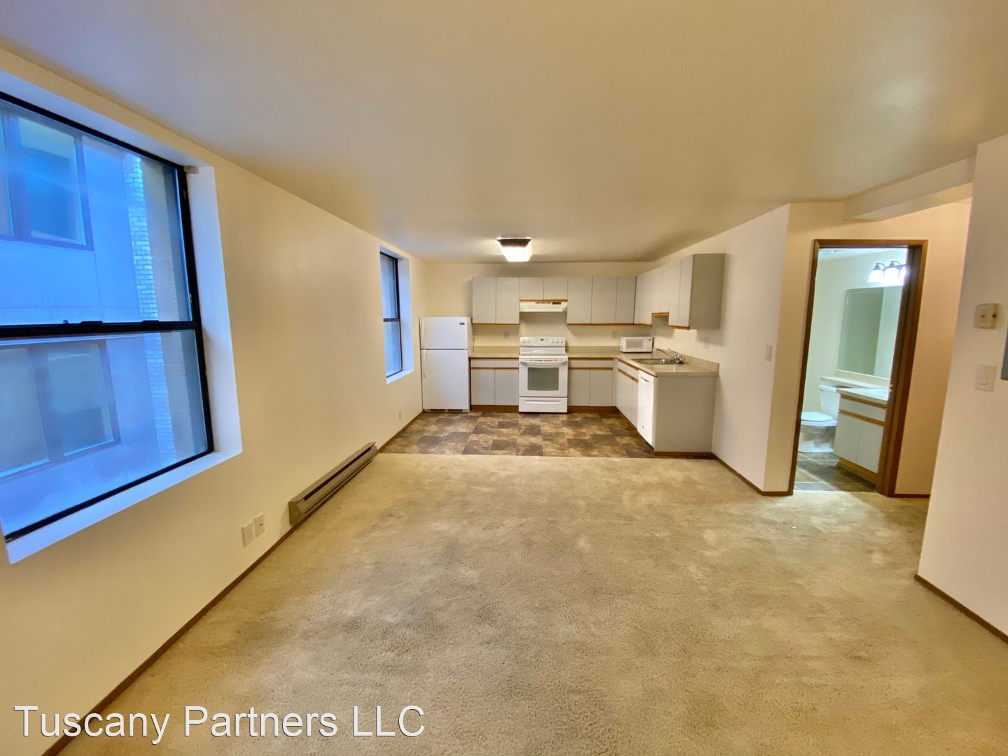 Tuscany 417 ****TWO MONTHS FREE OR $1095 BASE RENT W/ 1 MONTH FREE! $300 DEPOSIT*** - Apartment #417 is a comfortable 638 s.f. and faces are expansive courtyard! The bedroom and living room are separated by a hallway and feature a large coat closet, mirrored closet doors in the bedroom, and conveniences of a dishwasher, garbage disposal, and heat lamp in the bathroom.